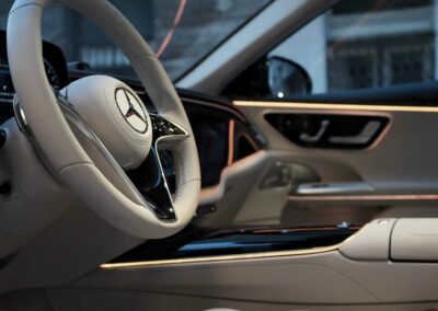 Wnętrze naszego Mercedesa-Benza klasy E to oaza spokoju, stworzona z myślą o potrzebach wymagających klientów.