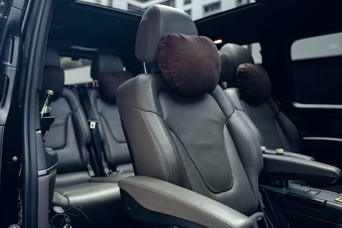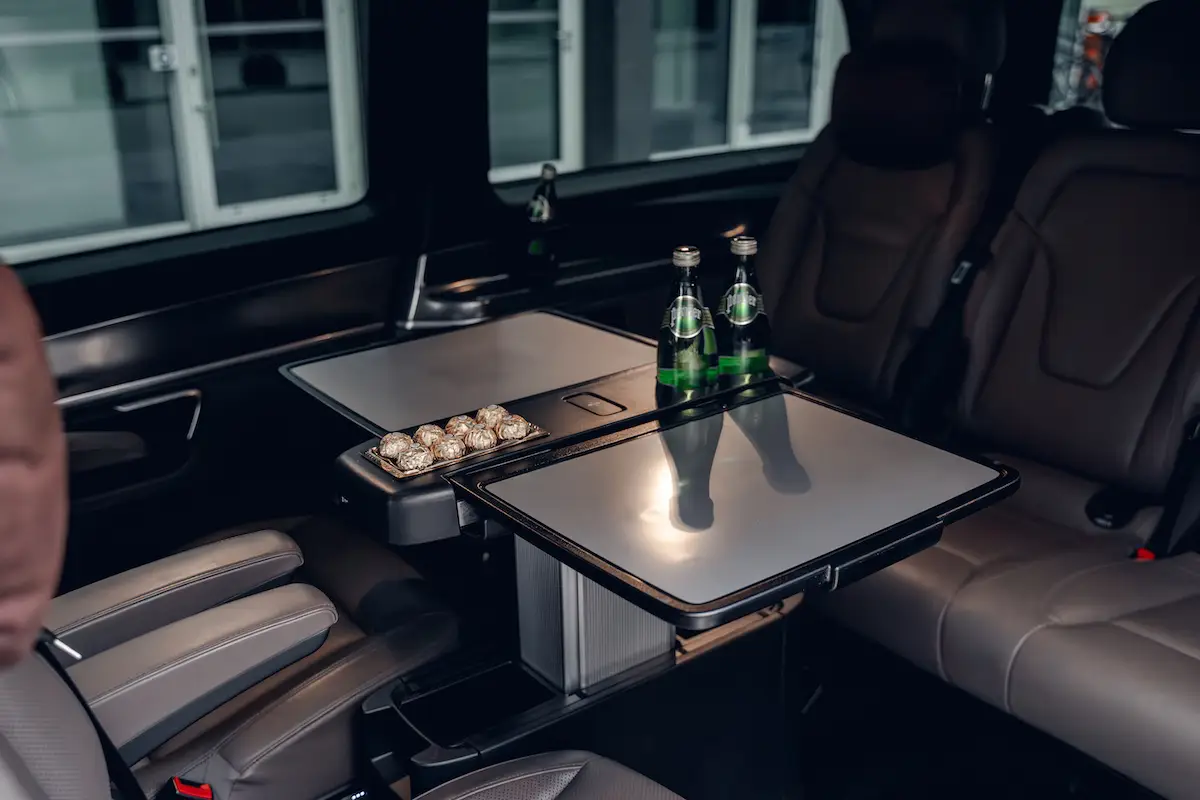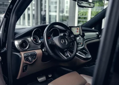 Wnętrze naszego Mercedesa klasy V to luksusowa przestrzeń zorganizowana z myślą o pasażerach ceniących wygodę, czas i pełną swobodę.